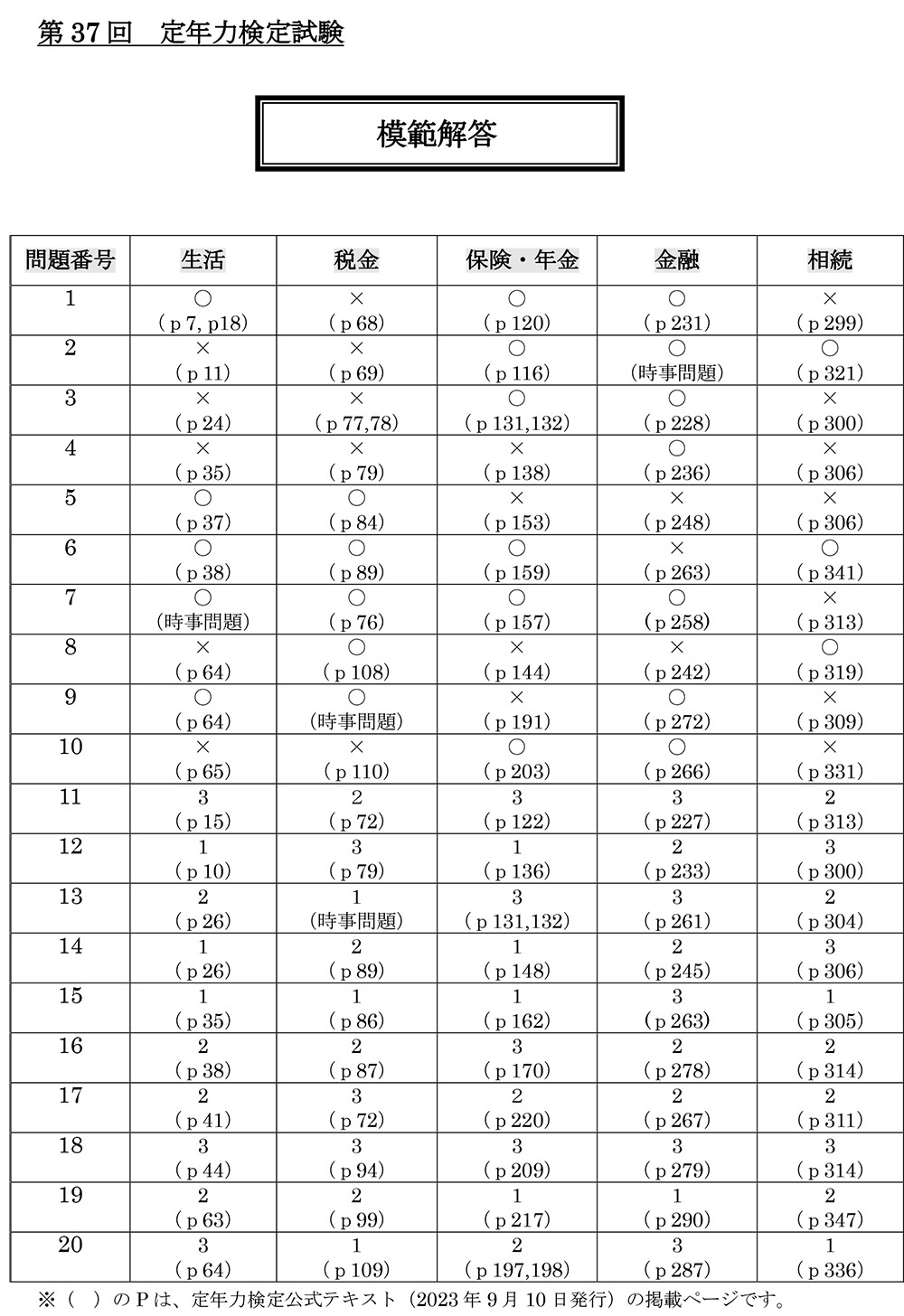 【2026年1月検定】第37回検定の模範解答 NEW! 2026 2/13 模範解答 2026.02.13 こちらが「第37回検定」の模範解答になります。 PDF版(模範解答)はこちらからダウンロードできます PDF版(間違いの多かった問題の解説)はこちらからダウンロードできます 模範解答
